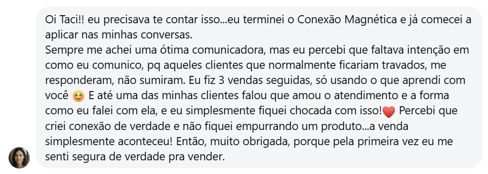 Veja a experiência de quem aplicou o Conexão Magnética e transformou conversas frias em vendas reais.